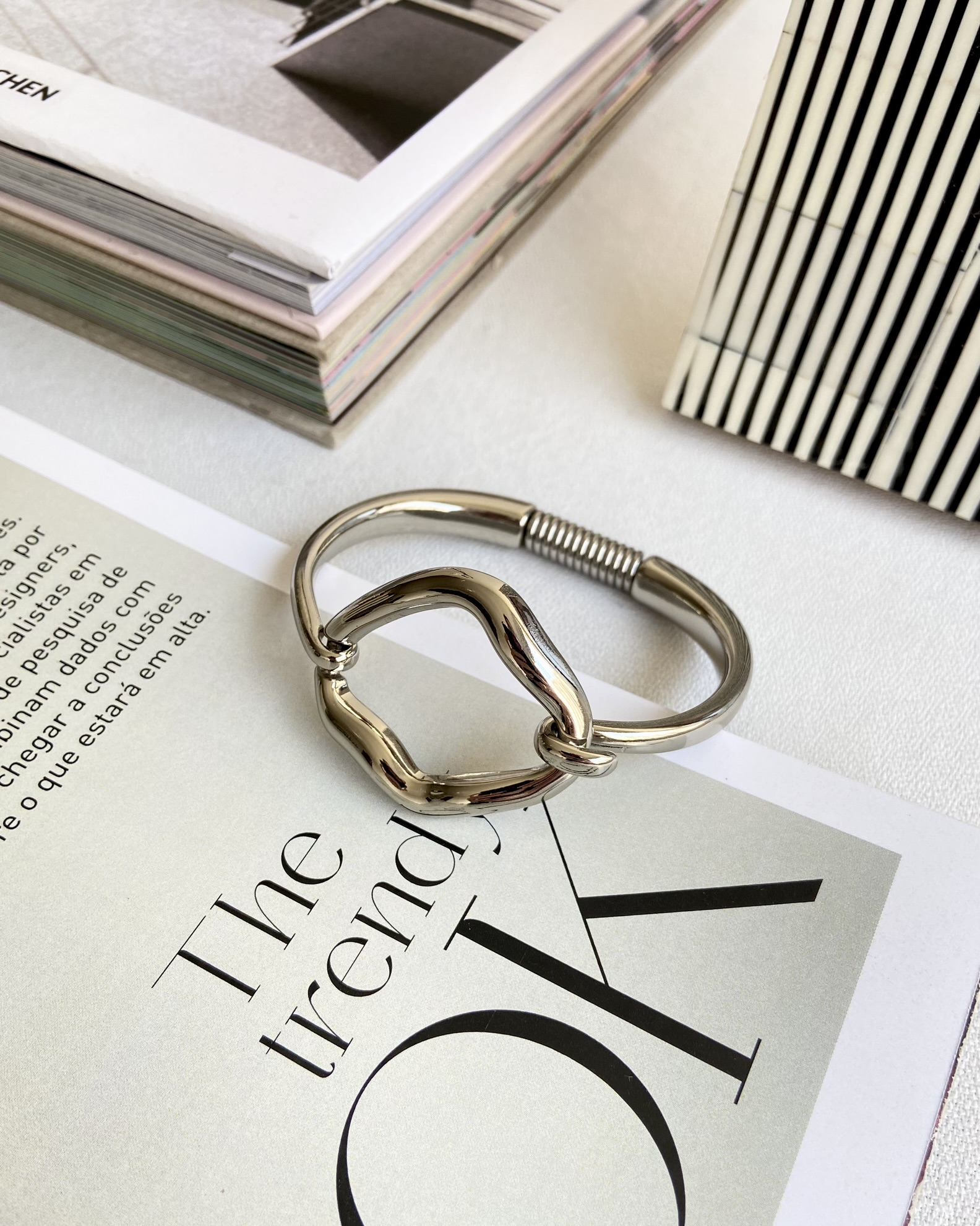 Bracelete com linhas orgânicas, um design contemporâneo e super tendência. Fechamento com impulso de mola e gancho para travar
