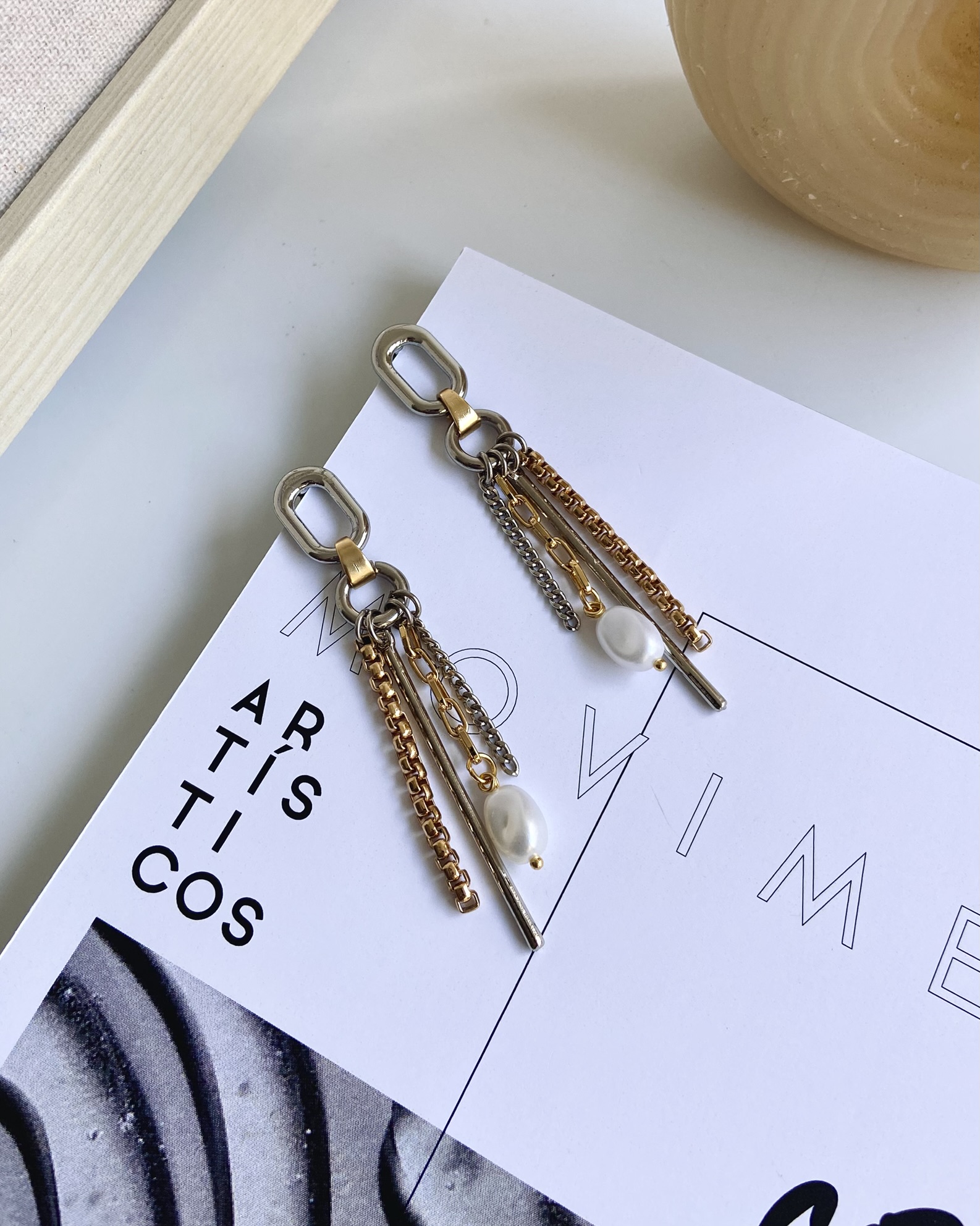 Além da mistura de banhos e texturas, o contraste entre as linhas curvas e as retas, são elementos que se equilibram na equação deste conjunto. Uma opção moderna e original para complementar suas produções.