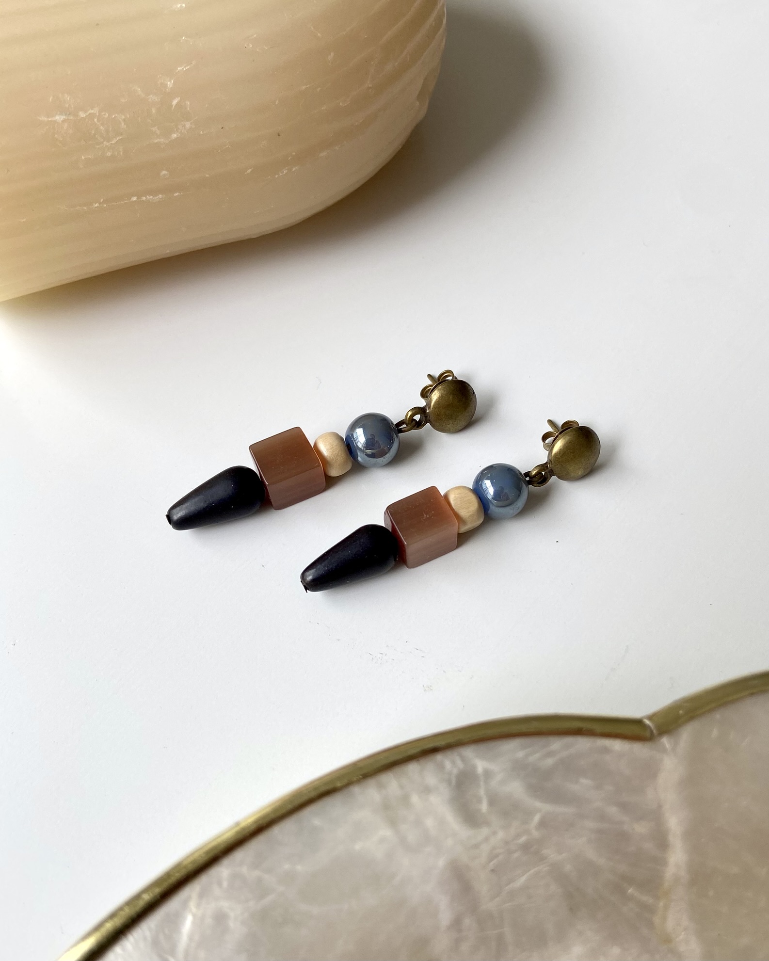 Mix de contas que a gente adora! Mistura única de cores, formas e texturas. Um brinco diferente e exclusivo pro seu ecervo.