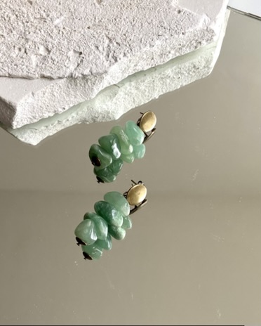 A forma irregular das pedras naturais deixa esse brinco despojado e original. O quartzo verde é um toque de cor sofisticado, uma bela opção pra compor suas produções do final de semana.