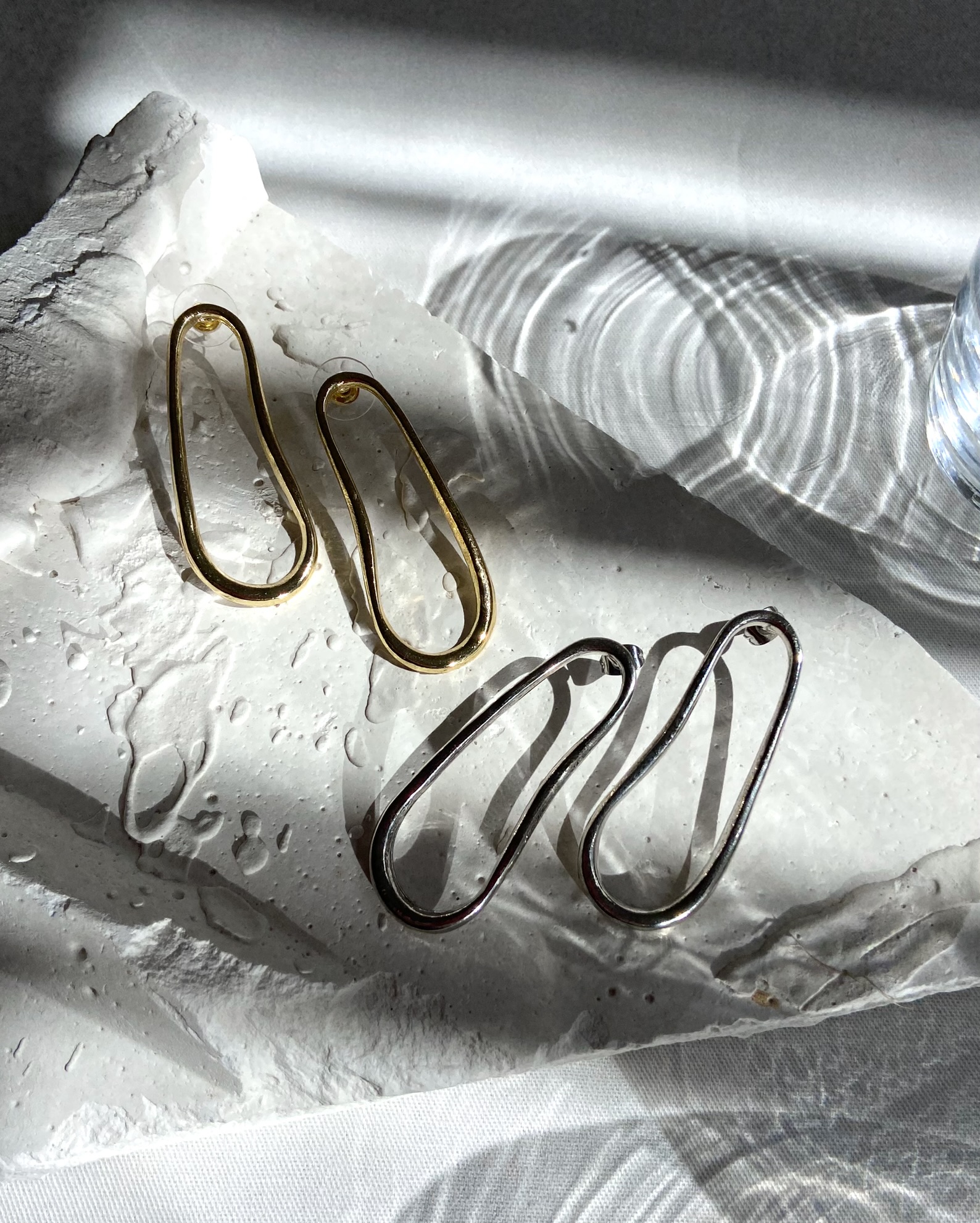 Brinco em formato orgânico, um design que está super em alta. Disponível em duas versões - dourada e prateada.
