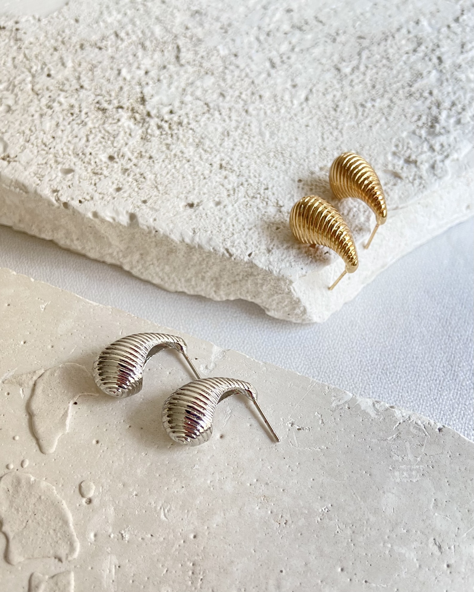 Com formato abaulado - que nos remete a uma gota, e sua textura riscadinha, este brinco é perfeito para usar no dia a dia ou combinar com colares mais protagonistas.