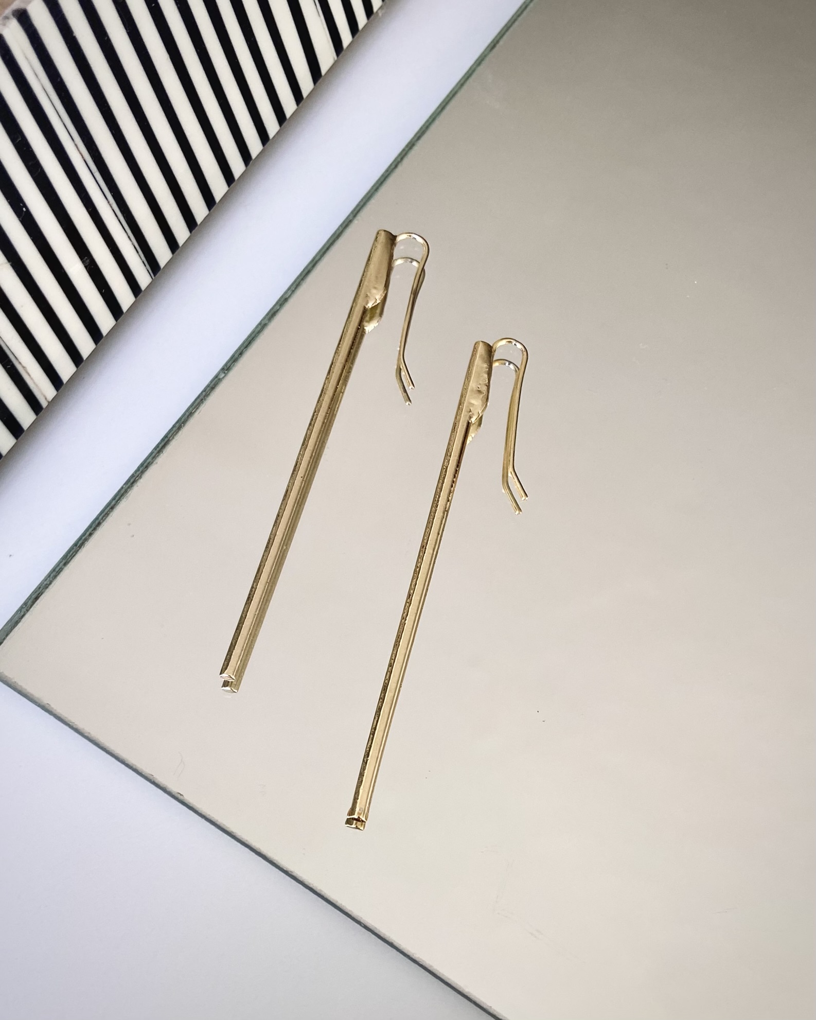 Um brinco com design extremamente minimalista, super clean, mas nada banal. Casa bem com estilos modernos e descolados.