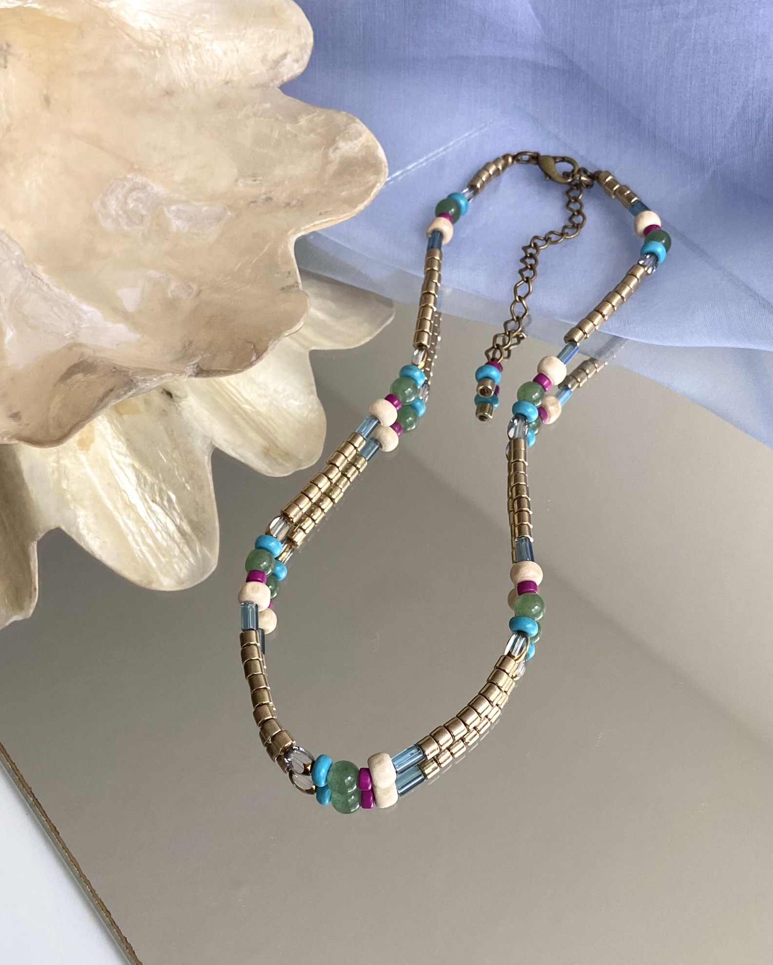 Pitadas de cor entre continhas metalizadas, equilíbrio visual entre o descontraído e o sofisticado, um acessório pra deixar seu estilo mais interessante.